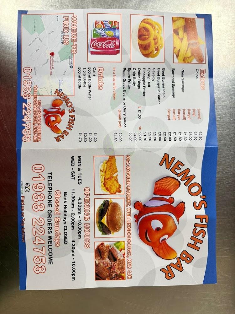 Located at 31A Oxford St, Wellingborough NN8 4JE, Nemo's Fish Bar has become a staple in the local dining scene. This charming establishment combines classic fish and chips with a warm, welcoming vibe that draws in families, university students, and tourists alike. The shop maintains a lively atmosphere, particularly on busy Friday evenings when locals flock for their favorite comfort food. The staff operates with efficiency and friendliness, ensuring that even during peak hours, the food arrives hot and fresh. Plus, with wheelchair-accessible seating and a dedicated kids' menu, families feel right at home. It's no surprise that this gem thrives at its village-like heart, creating a sense of community among visitors who often return to relive their tasty experiences. From its late-night offerings to quick lunch bites, Nemo's fosters an environment where laughter and conversation blend perfectly with the sound of sizzling fish.